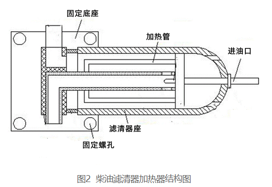 柴油濾清器管狀加熱器如圖2所示,包括濾清器濾座,密封圈,連接有固定塊,擋塊,擋塊的頂部固定連接有電源線,電源線的頂端貫穿濾清器濾座并延伸至濾清器濾座的外部,擋塊的底部固定連接有出油管,康明斯柴油加熱器出油管的表面開設有進油口。柴油加熱器通過設置擋塊、電源線、出油管、進油口、加熱管、進油管和溫度傳感器的配合使用,使柴油濾清器管狀加熱器油溫檢測準確,柴油濾清器管狀加熱器加熱元件的熱量能夠充分的發散,且能夠使油料加熱更均勻,能夠精確的感應到實時的油溫,有利于康明斯用戶的使用。
